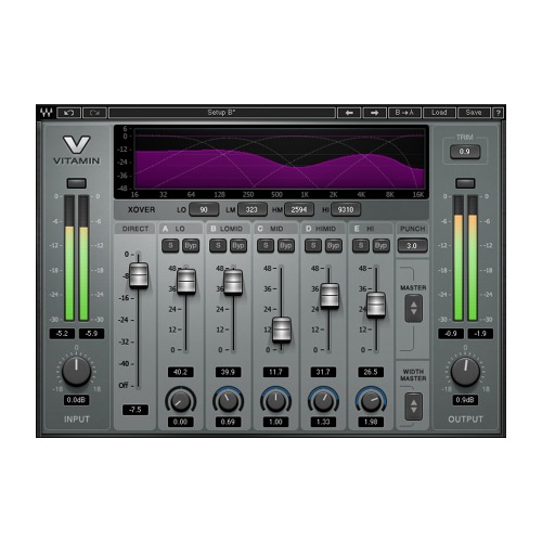 Waves Vitamin은 멀티 밴드 하모닉 인핸서/톤-셰이핑 플러그인으로 오리지널 사운드에 풍부한 배음을 혼합하여 강력한 사운드를 생성해냅니다.