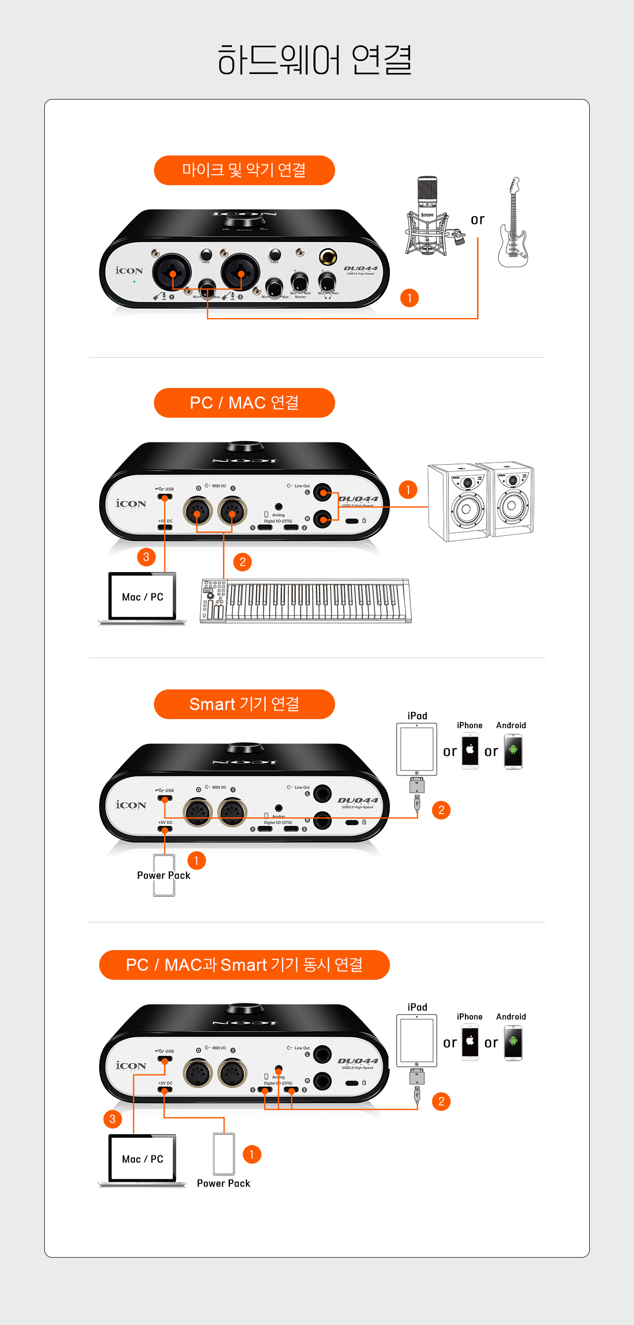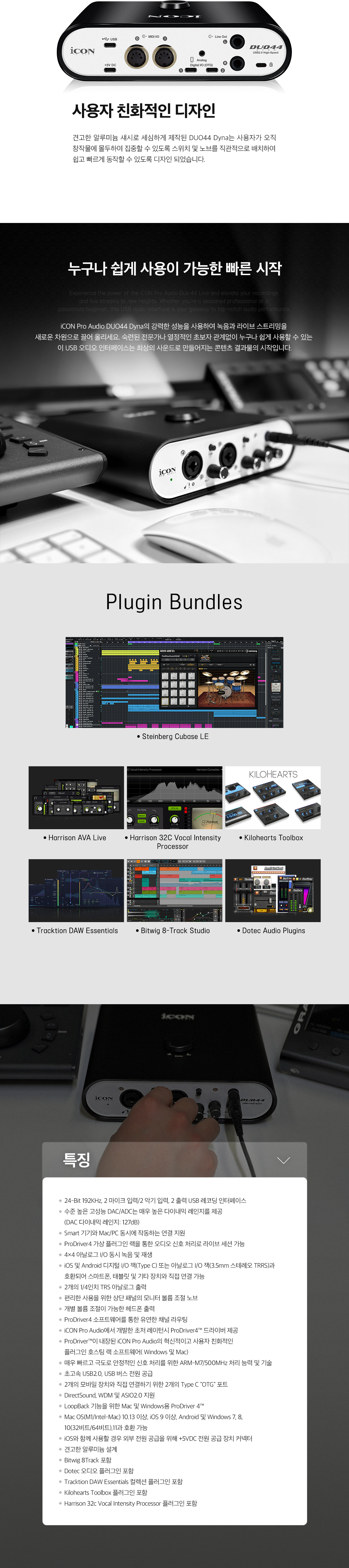 가격 대비 믿을 수 없는 성능의 ADC와 마이크 프리앰프 설계로 어떤 사용 환경에서도 사용 목적에 부합한 결과를 이끌어낼 수 있습니다. 개인 방송 콘텐츠부터 거칠고 음압 높은 사운드 녹음 환경에 이르기까지 무엇을 녹음해도 깨끗하고 높은 음압의 사운드를 얻을 수 있습니다. 콘덴서나 다이내믹 마이크 또는 기타나 베이스 등 어떤 악기를 연결하든 DUO44 Dyna를 사용하면 창의적인 아이디어를 손쉽게 구현할 수 있습니다.