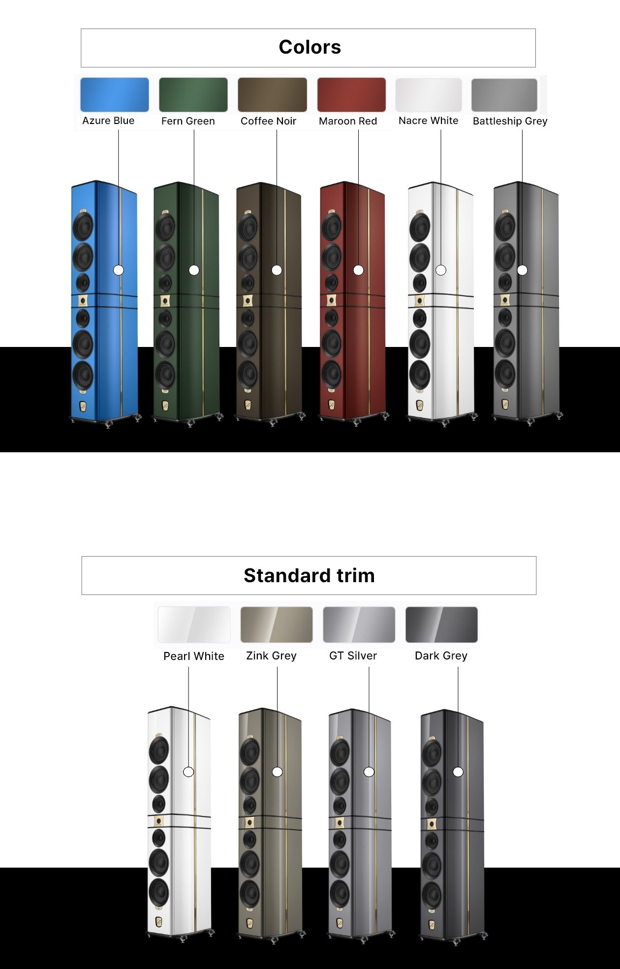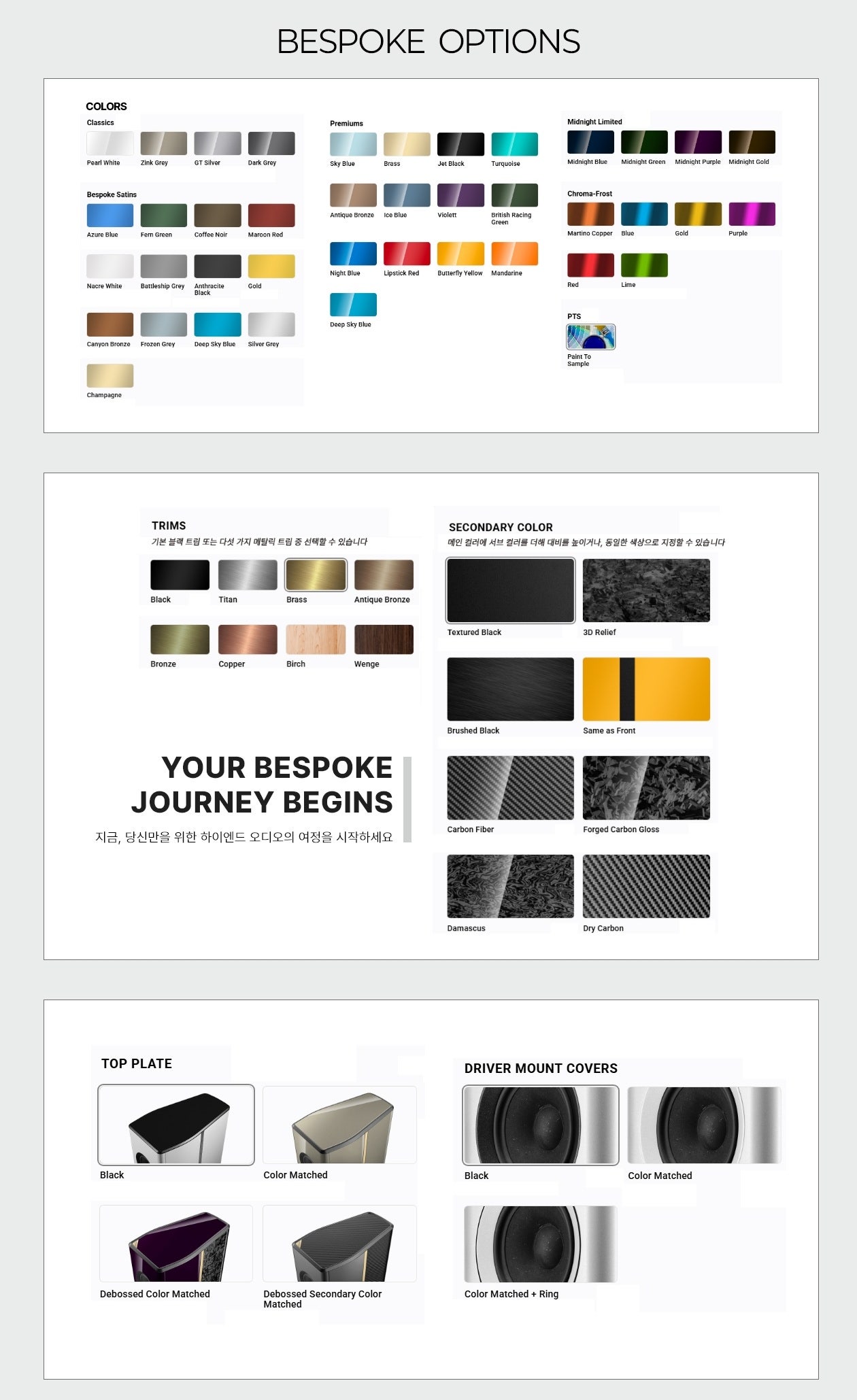 기존의 마감 옵션을 넘어 당신만의 독특한 스피커를 원하신다면, 언제든 BLS의 하이엔드 팀에게 문의해 주십시오. 당신의 상상 속 컬러를 현실로 만들어 드릴 준비가 되어 있습니다.